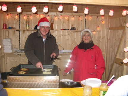 Gut gelaunt trotz spritzendem Fett: Dagmar und Hubert