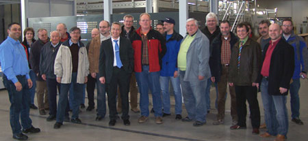 Bei der Führung durch den hochmodernen Betrieb der Wellpappe Höchstädt hat es manchen die Sprache verschlagen, wie hochtechnisiert die Herstellung von Wellpappeartikeln heutzutage ist. Kernstück des Betriebes ist eine mehr als 40m lange Produktionsmaschine die im Zweischichtbetrieb bedient wird. 70 Mitarbeiter halten die Firma, in der ein sehr kollegiales und angenehmes Betriebsklima herrscht, am laufen. Die Führung durch den Betrieb bekräftigte ein weiteres mal, wie wichtig es ist, die Betriebe in unserer Region zu kennen.