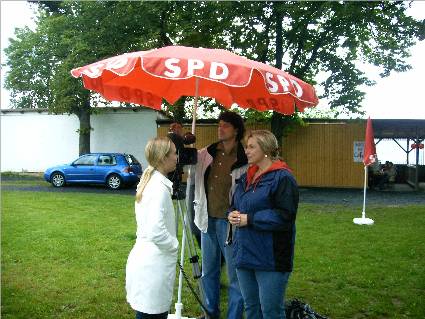 Das Fernsehteam der ARD beim Interview mit der Bundestagsabgeordneten Petra Ernstberger Der Wettergott meinte es diesesmal nicht besonders gut mit den Genossen. Beim traditionellen Sommerfest auf dem Wiesenfestplatz war trotzdem allerhand los. Ein großes Dankeschön an alle, die sich vom Wetter nicht abhalten ließen, dabei zu sein.