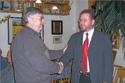 Der scheidende Vorsitzende Berndt Amann gratuliert seinem Nachfolger Hans-Jürgen Wohlrab Bei der Jahreshauptversammlung 2006 hat der langjährige Vorsitzende des Ortsvereines Berndt Amann aus gesundheitlichen Gründen auf eine erneute Kandidatur verzichtet. Wie Amann in seiner letzten Rede als Vorsitzender betonte, fiel im der Verzicht auf dieses Amt nicht leicht. Aber seine angeschlagene Gesundheit machten einen vollen Einsatz für den Ortsvein unmöglich. Er gratulierte seinem einstimmig gewählten Nachfolger Hans-Jürgen Wohlrab und wünschte ihm eine glückliche Hand bei der Führung des Ortsvereins.
