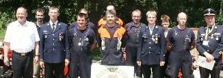 Der Komandant Helmut Warta der FFW Hohenberg a.d. Traisen überreichte vor der Heimfahrt die begehrten Abzeichen Am Freitag, 1. Juli 2005 machte sich eine kleine Schar Feuerwehrbegeisteter aus Hohenberg/Eger auf die Fahrt nach Hohenberg a. d. Traisen, der Partnerstadt in Österreich. Acht aktive Feuerwehrmänner und eine Feuerwehrfrau schickten sich an, beim 55. Niederösterreichischen Landesfeuerwehr-Leistungsbewerb in Traisen das Östereichische Leistungsabzeichen in Bronze zu erwerben.