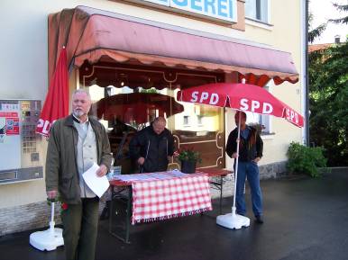 Vor dem Laden von Gottfried Kaiser lagen die Unterschriftslisten aus. Das Thema fand bei den Passanten großen Anklang. Praktisch jeder trug sich ein und unterstützte damit die Forderung von Gewerkschaften und SPD nach einem Mindestlohn in Höhe von 7,50 Euro für alle Branchen. Momentan stößt dies auf breite Ablehnung beim Koaltionspartner CDU/CSU.