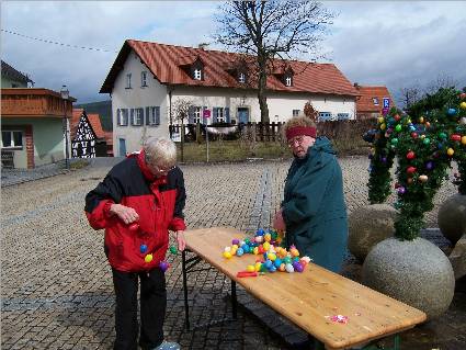 Wir hoffen, dass Hohenbergs Bürgerinnen und Bürger wieder zahlreich die Gelegenheit zum Einkaufen auf dem Ostermarkt nutzen und somit die viele Arbeit, die sich der Arbeitskreis, die Fieranten und die Männer vom Bauhof machen, belohnen. Die Feuerwehr bewirtet im Zelt und es gibt die ersten Köstlichkeiten vom Grill. Die Hohenberger Pferdefreunde bieten Gelegenheit zum Pony-Reiten und die Osterhasen verteilen wieder Süßigkeiten an unsere kleinen Besucher. Wir wünschen allen ein paar vergnügliche Stunden. Samstag, den 8.April 2006.