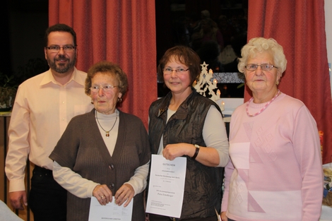 SPD-Ortsvereinsvorsitzender Wohlrab mit den Gewinnerinnen Johanna Gädigk, Gertraud Rennhack und Margarete Kipper.