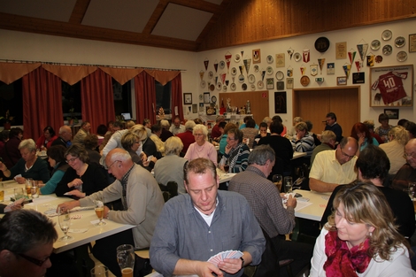 Zu einem absoluten Erfolgsschlager hat sich das Rommé-Turnier der Hohenberger SPD entwickelt. Bereits 2010 hatte es einen neuen Besucherrekord gegeben. Aber heuer traten mit 72 Rommé-Freunden noch einmal 10 mehr im Wettbewerb um die begehrten Preise an als im Jahr zuvor. Dementsprechend rappelvoll war auch der Saal im FC-Heim.
