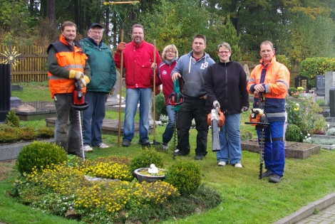 Aufgeräumt und gepflegt kann der Friedhof in Neuhaus in den Winter gehen. Die Kandidatinnen und Kandidaten der Hohenberger SPD mähten den Gottesacker, schnitten die Hecken und befreiten das Gelände vom Laub. Bürgermeister Jürgen Hoffmann hatte dem Antrag der SPD gerne entsprochen und als Bürgermeisterkandidat natürlich kräftig mit angepackt.
